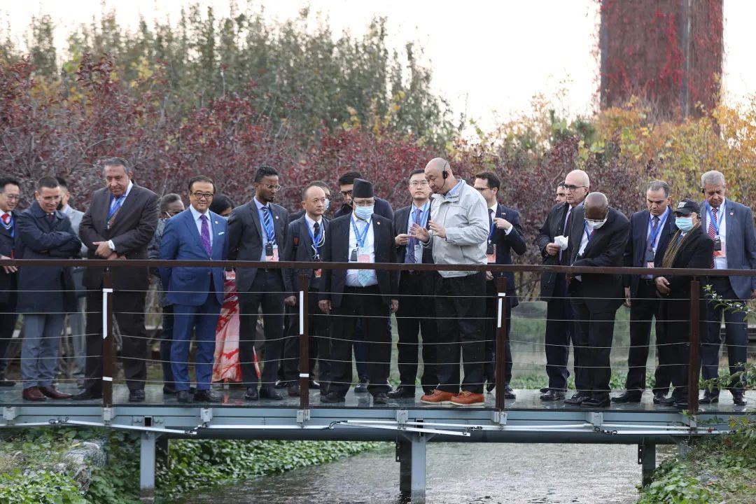 在“一亩泉”生态湿地取完一桶再生水后,阿尔及利亚驻华大使哈桑·拉贝希说“城市污水经过再生水厂的多道工序处理后,竟然可以达到饮用标准!近年来,中国站在人与自然和谐共生的高度谋划发展,这次参访进一步感受到了中国绿色发展的成功经验。”在场外国使节纷纷赞叹中国及中信集团在环保领域取得的显著成就,并希望能将先进理念与技术借鉴到本国,共同参与到国际“碳中和”、“碳达峰”生态环境治理中。