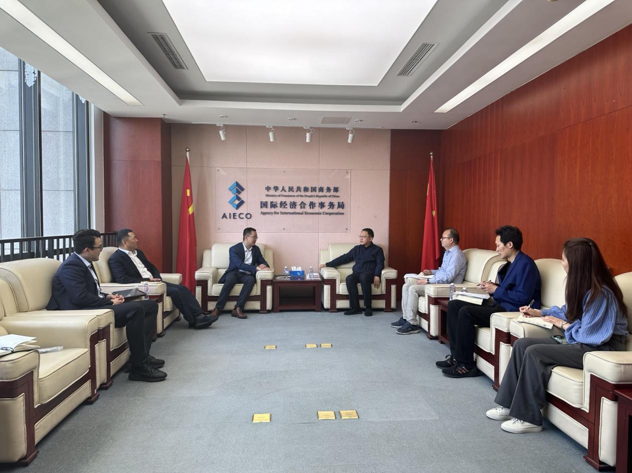 近日,中信环境党委副书记、总经理孙磊带队赴商务部拜会国际经济合作事务局局长孔德军。双方就援外业务进行深入交流。中信建筑院党委书记、执行董事、总经理吴凌,党委委员、副总经理范天宸陪同座谈。