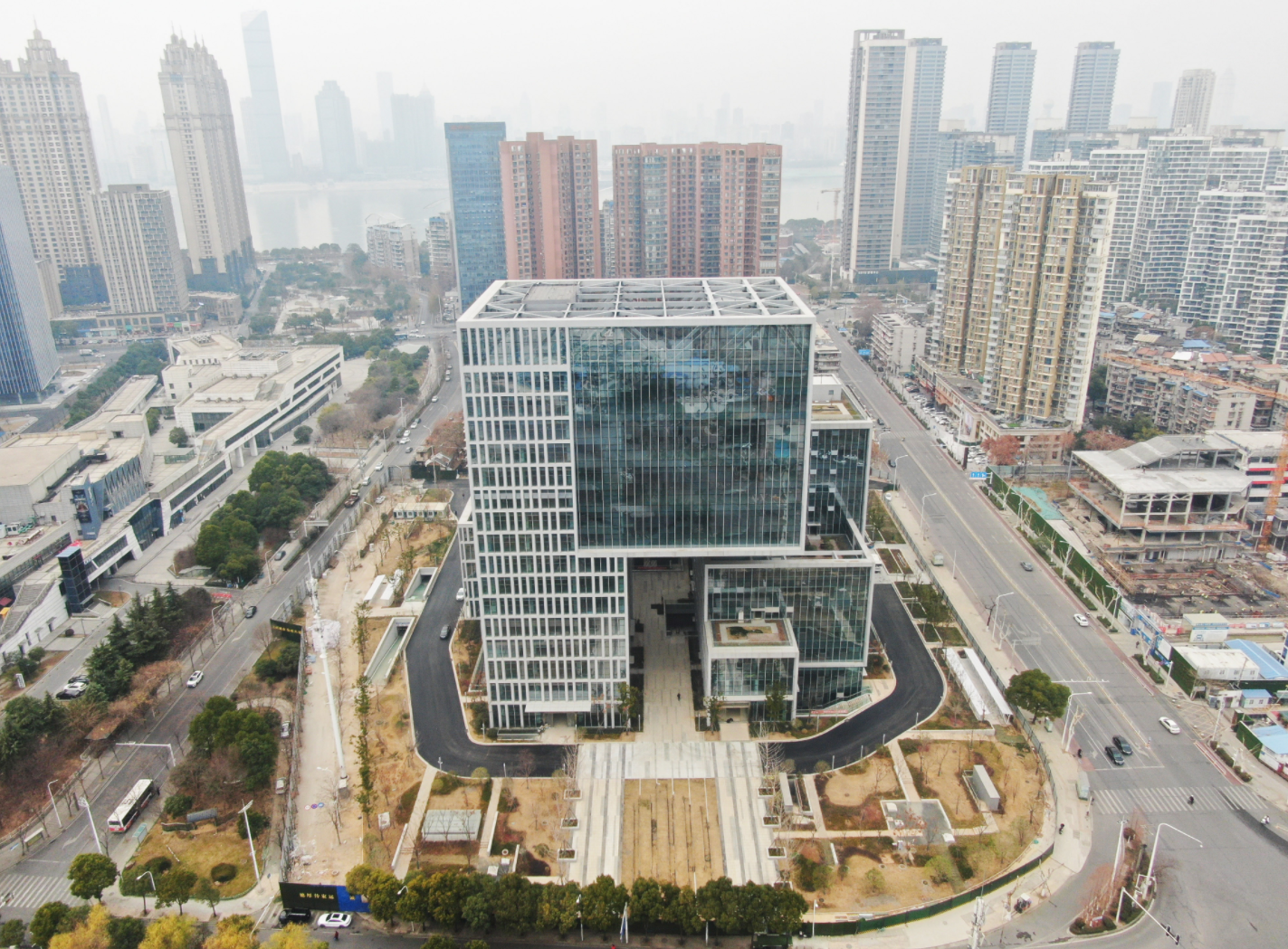 该项目位于武汉武昌区新生路与积玉路交汇处,是一座集政务服务中心、商务办公、社区卫生服务中心及大数据中心等多功能于一体的重要民生工程。该建筑地下共四层,地上十六层,总建筑面积达14.1万平方米,通过创新的建筑设计,将自然美景与现代都市生活完美融合。最大亮点在于入口处拥有高达36米且投影面积接近900平方米的超高无柱大空间,将湖景以及城市公园绿地等自然景观巧妙地引入到了中心庭院之中,营造出一种“门常开,地常绿”的独特氛围。项目预计2025年3月正式交付使用,届时将成为地区内的地标建筑,为市民提供便捷高效的公共服务,也成为展现武汉城市魅力与活力的新窗口。
