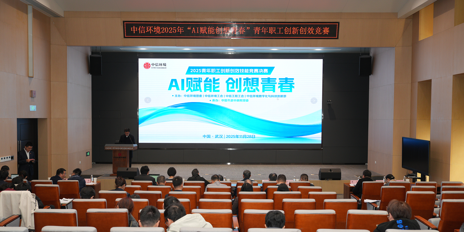 11月28日,中信环境2025年“AI赋能 创想青春”青年职工创新创效技能竞赛决赛在武汉燃情收官。经初赛严格筛选,8支从六大应用场景中脱颖而出的优秀项目团队江城集结,共赴一场属于青春、属于智慧、属于未来的创新盛宴。本次大赛由中信环境团委、中信环境工会、中信工程工会及数字化与科技创新部联合主办,中国市政中南院团委承办。湖北省总工会大企业工委主任胡合宇、中信工程副总经理张昊应邀出席。