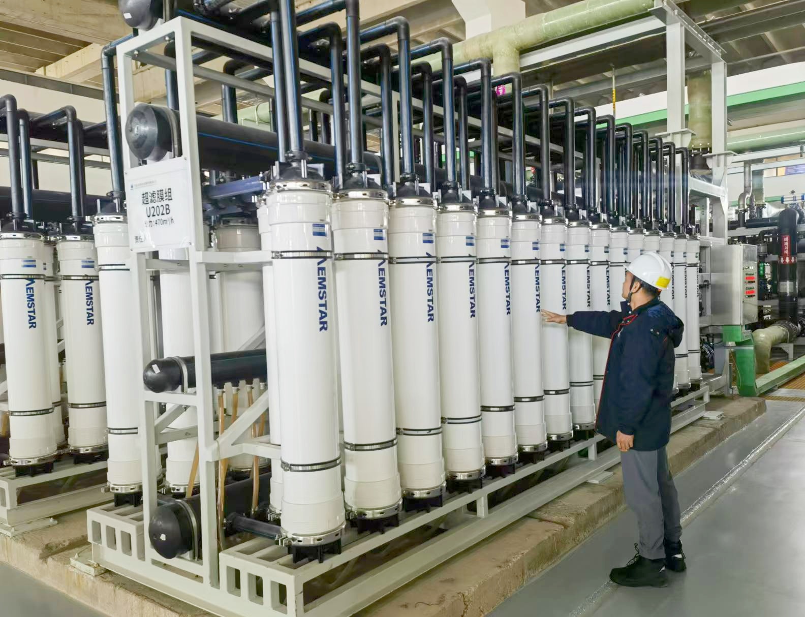 作为目前国内规模最大的反渗透海水淡化与综合利用一体化单项工程,天津南港海淡项目共设5条生产线,日产淡水15万吨,可满足约68万居民日常生活用水需求,每年可替代节约淡水资源超5000万吨。该项目由美能提供超滤系统的技术集成与装备供应服务,在超滤车间部署了4个序列共32套超滤膜机组,以稳定卓越的核心技术装备,为项目“向海要水”、实现资源高效转化提供了关键支撑。